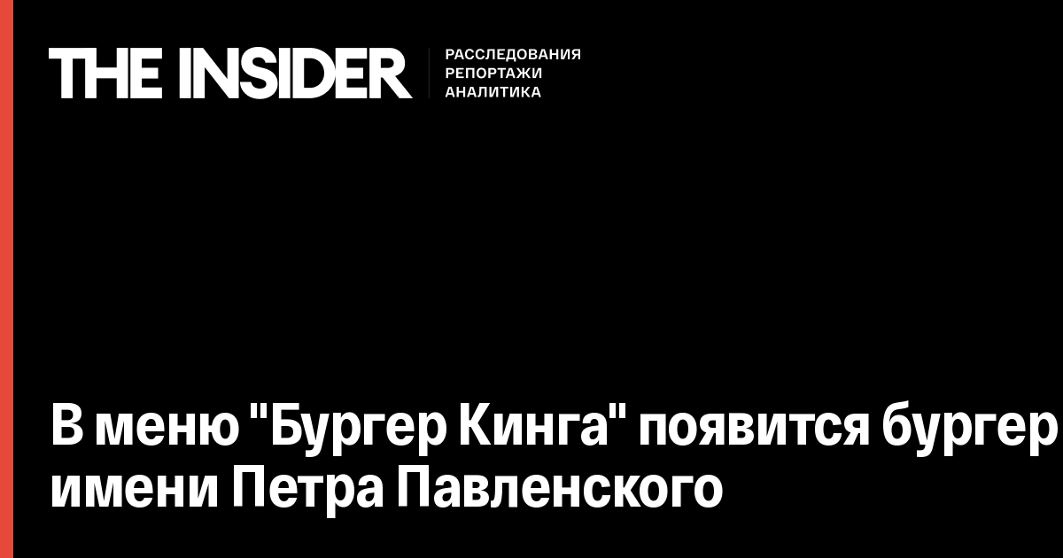 В меню "Бургер Кинга" появится бургер имени Петра Павленского