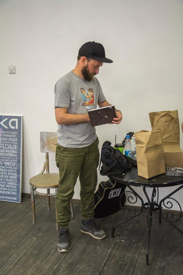 Впрочем, Андрей Оплетаев не выглядит эпатажно. С виду – обычный тихий бородатый мужичок с серьгами в ушах. Много шутит. Не чужд семейным ценностям: постоянно упоминает о жене, сыне, родителях, дедушке, родном городе… Псков ему понравился настолько, что он стал подумывать перевести сюда на жительство родителей из Кургана – поближе к Петербургу («Я видел больше 400 городов, но Псков меня сильно поразил. Тут очень похоже на Прибалтику или Финляндию, и к тому же чистота – редкая примета для России»).