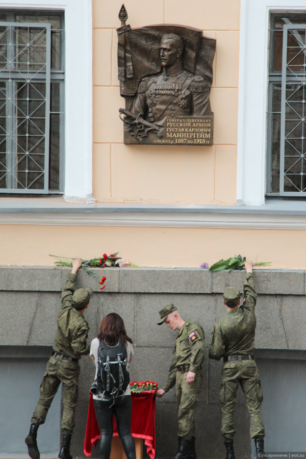 Открытие памятной доски в честь маршала Маннергейма. Фото: "Суть времени" В то же время, надо сказать, есть интересные сигналы: городские власти Петербурга демонстрируют, что они готовы адаптироваться к новым реалиям. Очень наглядно показывает особенности современной ситуации такая вот история. Совсем недавно — этим летом — Сергей Иванов, еще будучи могущественным руководителем Администрации президента, открывал в Петербурге памятную доску маршалу Маннергейму, которая вызвала массу споров. Сейчас Иванов в отставке, а доску в ближайшее время собираются снимать. То есть городские власти демонстрируют, что чувствуют ситуацию.