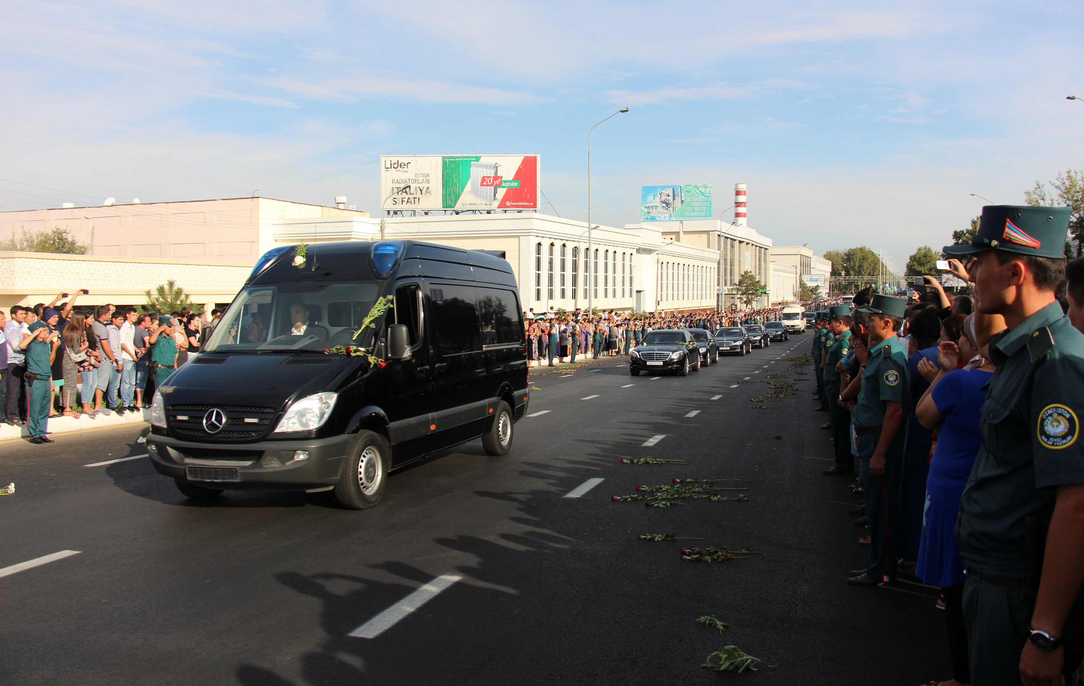 Церемония прощания началась в резиденции Каримова. На похороны президента прибыли делегации из 17 стран мира, включая представителей Афганистана, стран Центральной Азии, Грузии, Южной Кореи, Белоруссии и Украины.