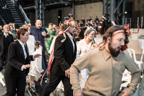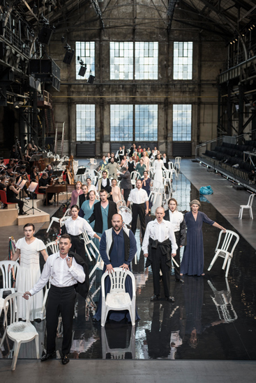 С другой стороны, площадки Руртриеннале открывают постановщикам такие возможности, которых не бывает в стандартном оперном театре, где публика отделена от сцены оркестровой ямой или подмостками. Не имеет никакого смысла выстраивать в цехах с естественным освещением черную коробку со штанкетами. Мы залы не затемняем; если в зале есть дневной свет, то артист должен с этим мириться и это использовать. И это — необычные условия, которые подчас дают хорошие художественные результаты. Наша «Альцеста» начинается при дневном свете и заканчивается при свете луны. Когда снаружи идет дождь, мы слышим внутри его шум, и это лишь добавляет шарма спектаклю.