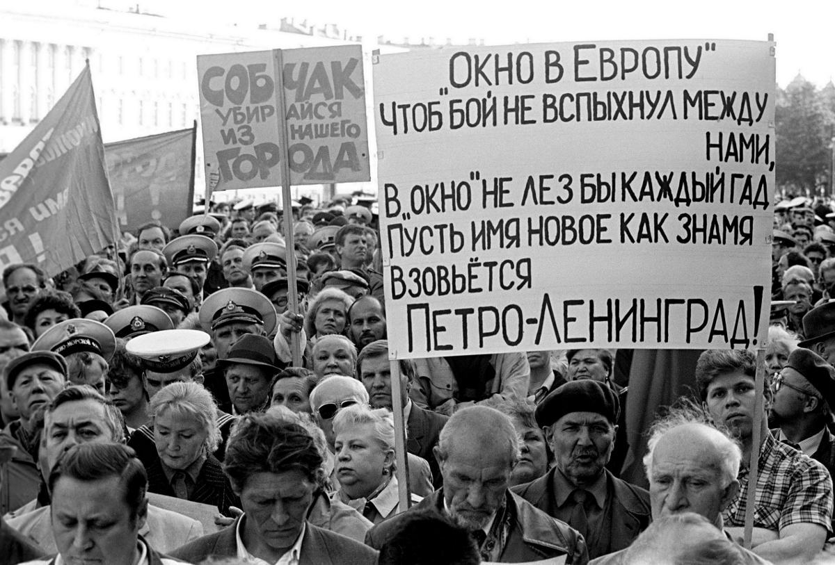 В конце 1980-х вышла знаменитая статья Даниила Гранина, где он называет Ленинград великим городом с областной судьбой. В 1991 году появился шанс эту судьбу изменить. В те дни вся жизнь проходила на улице. У выходов из метро по одну сторону стояли защитники Ленинграда, по другую — сторонники Санкт-Петербурга, у тех и других — плакаты, листовки. У одних «Нет Ленинграда — нет Октября!» У других «Город не должен носить имя палача!»