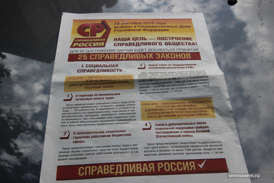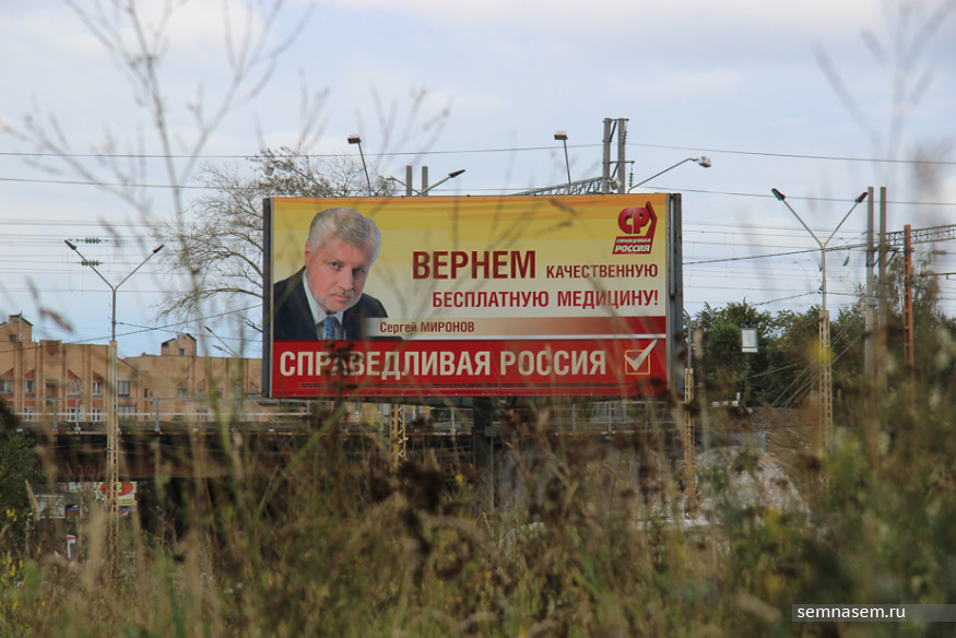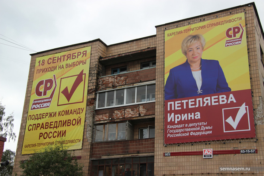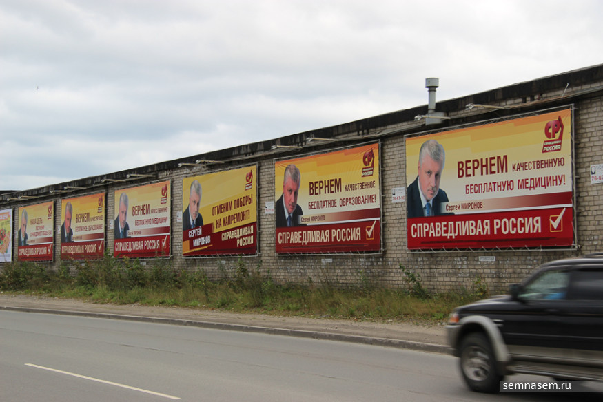 В отличие от партии власти «справороссы» активно используют изображение своего лидера. С билбордов Сергей Миронов обещает отменить плату за капремонт, вернуть бесплатное образование и медицину. Иногда — всего сразу. Добиться справедливости обещают и его карельские товарищи по партии.