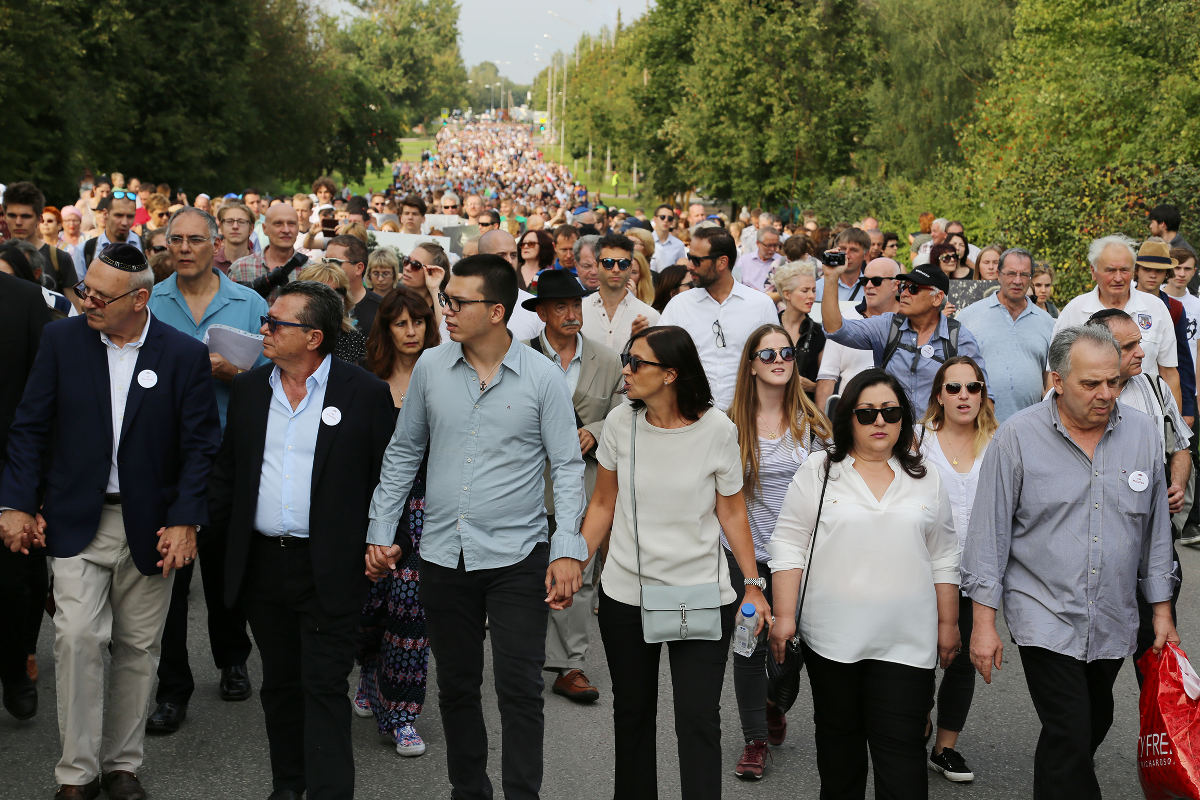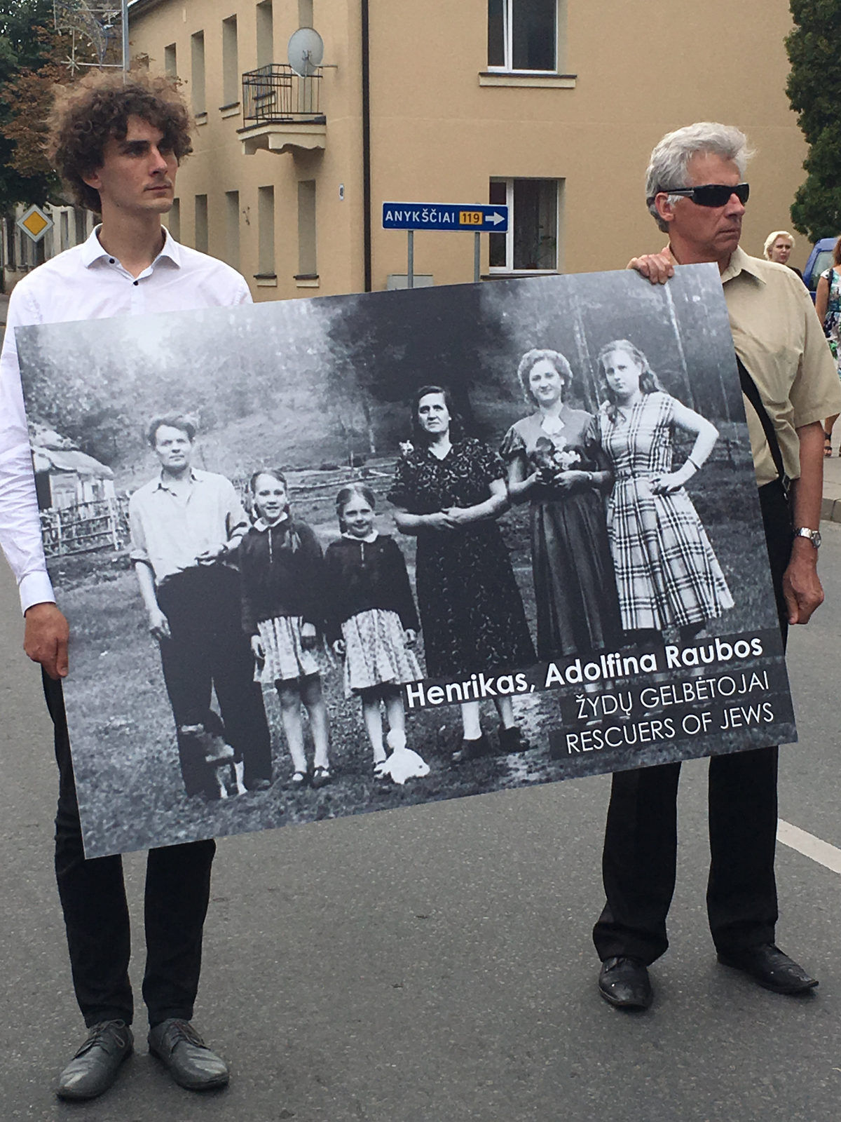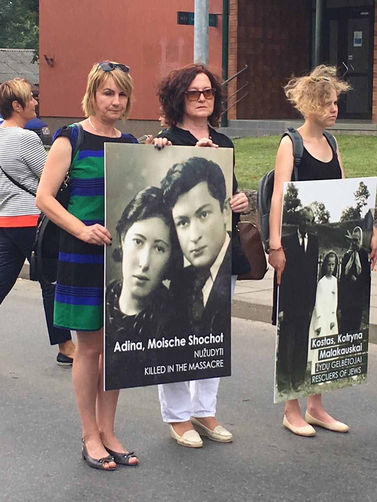 В тот день, 29 августа 2016 года, ближе к четырем часа дня, в центре Молетая было не протолкнуться. На 16:00 был назначен марш по «смертному пути» (определение одного из организаторов): от того места, где тогда, в августе 1941 года, еще была старая деревянная синагога — это на одной стороне и красные кирпичные дома — на другой, 75 лет назад сюда согнали евреев, в основном женщин, стариков, детей (молодых мужчин собрали и расстреляли тремя днями раньше) и погнали за город, полтора километра, где их и забили. В Молетае перед войной жили три тысячи человек, из них две с лишним тысячи — евреи.