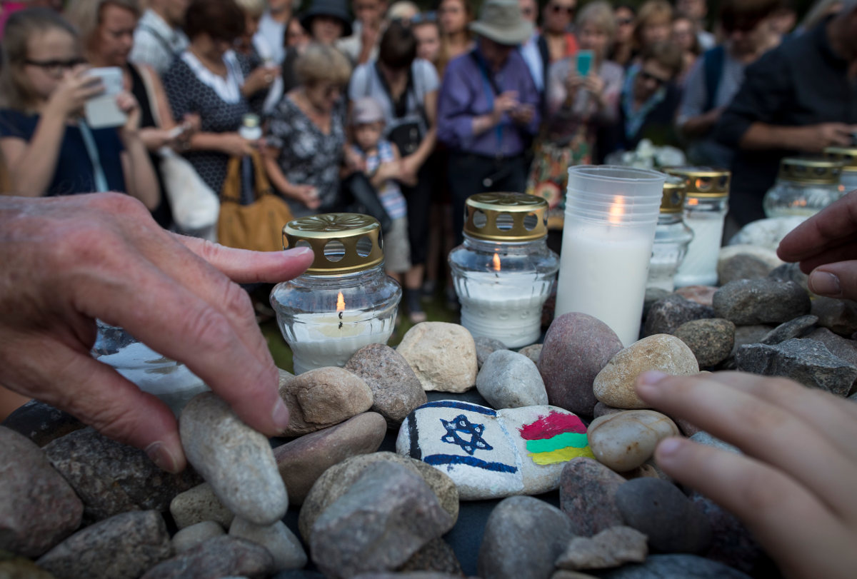 С «той стороны» — это, значит, с моей стороны. Когда в августе Ивашкявичус написал, как вместе с дочерью проехал по местам расстрелов (Укмярге — убито 10 тыс. евреев, Утяну — 8 тыс., Швянчёнеляй — 8 тыс., Понары (пригород Вильнюса) — 100 тыс.) и почему именно марш в Молетае для него так важен, я взяла билет на самолет. «У нас, несомненно, есть шанс, возможность сделать все это и со спокойной, хотя бы намного более спокойной, совестью и посмотреть им (детям) в глаза, — писал Ивашкявичус. — Может быть, не теперь, но в старости, когда они будут большие. Ничего им не говорить, не объяснять, просто прийти к тем могилам, к этим деревьям в парках, что мы посадим. Побродить там, где лежат евреи, наши сограждане, лежат в достоинстве и почете. И пусть они, наши дети, не узнают, что когда-то все было иначе. Пусть они думают, что так было всегда».