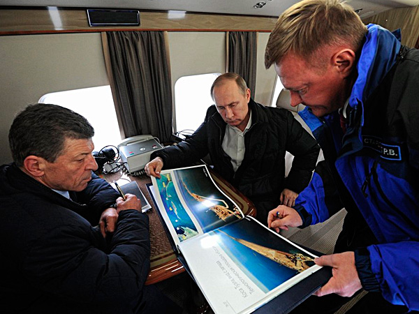 Владимир Путин и Дмитрий Козак знакомятся с проектом Крымского моста. / putin.kremlin.ru Простых заместителей руководителя АП в 2004 году было аж шесть человек.