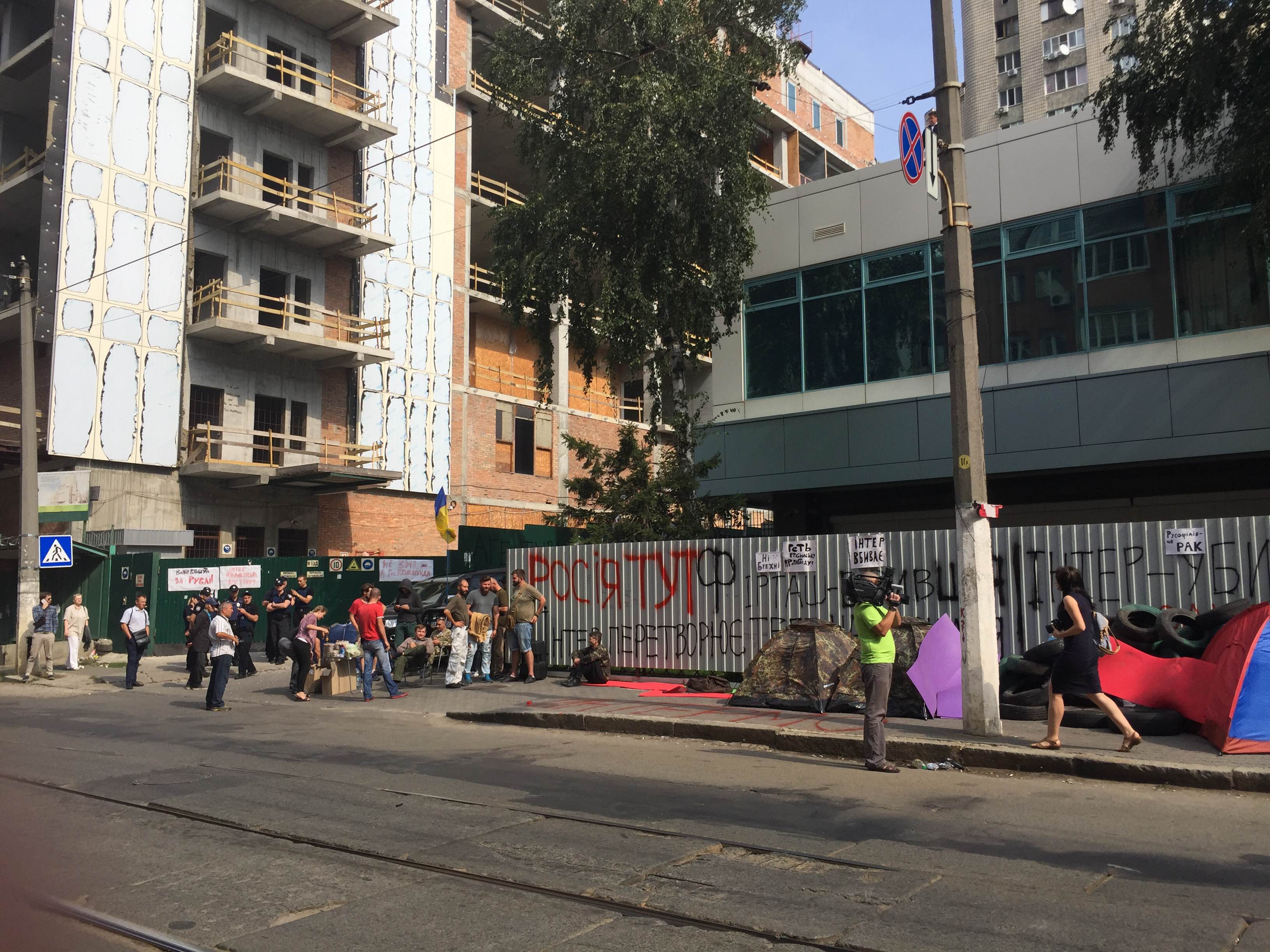 Вчера противники "Интера", считающие его "рупором Кремля", объявили бессрочную акцию протеста. Как сообщает корреспондент Радио Свобода, около 100 бывших бойцов добровольческих батальонов "Святая Мария", "Айдар" и "Донбасс" воздвигли двухметровый забор вокруг главного офиса телекомпании, заблокировав все выходы из здания.