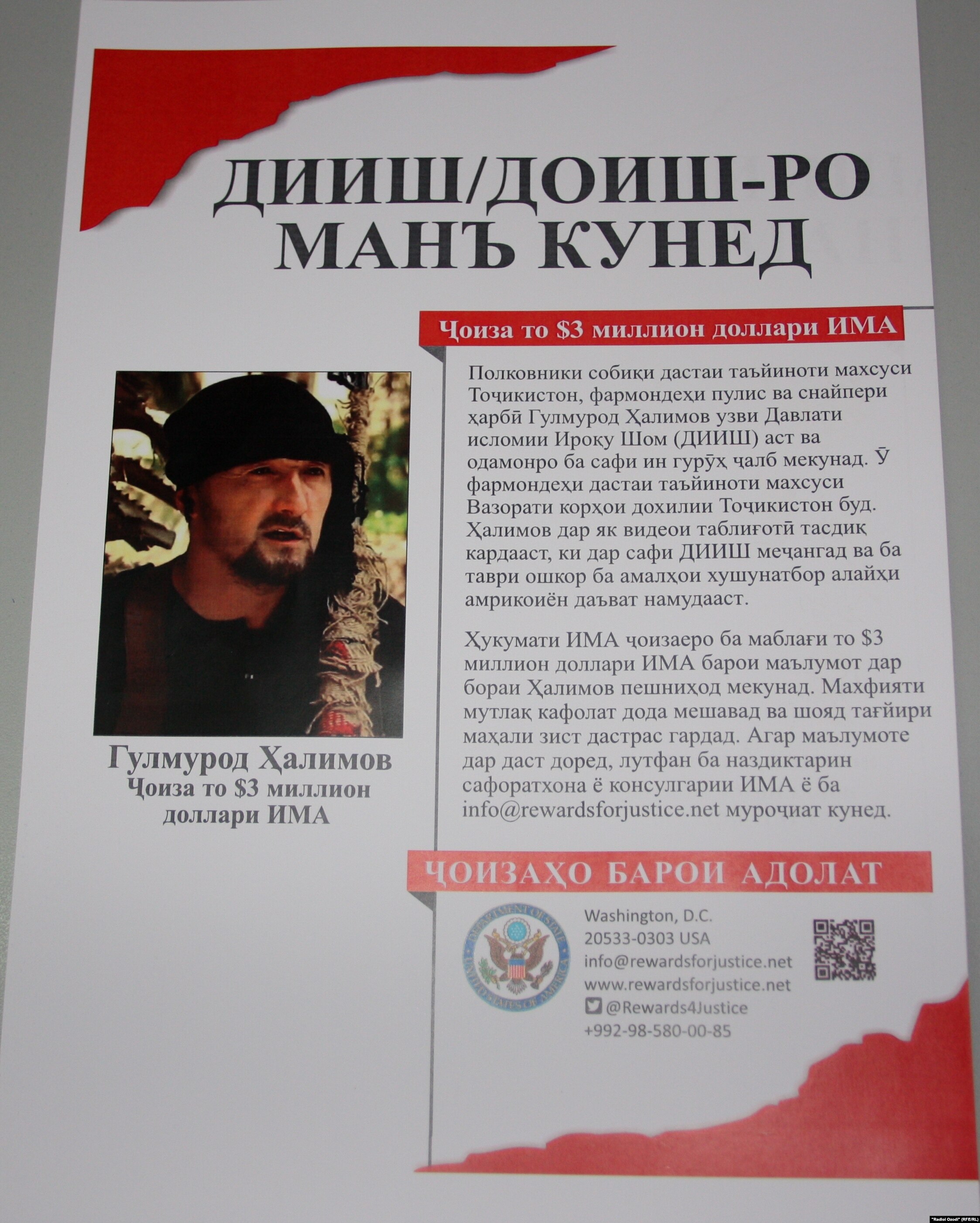 Халимов, бывший командир спецназа МВД Таджикистана, стал членом экстремистской группировки "Исламское государство" в апреле 2015 года. В Душанбе утверждают, что Халимов был дважды ранен в боях в Сирии.