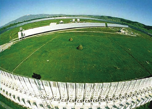 Телескоп РАТАН-600 — крупнейший в мире телескоп рефлекторного типа, работающий как единое зеркало. Есть телескопы, большие по размеру — радиоинтерферометры и по площади — например, новый радиотелескоп FAST в Китае. РАТАН-600 расшифровывается как «Радиоастрономический телескоп Академии наук диаметром 600 метров». Он установлен в Специальной астрофизической обсерватории РАН на окраине станицы Зеленчукской в Карачаево-Черкесии. Фото с сайта sao.ru