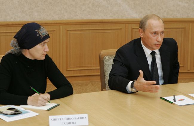 Фото: Сергей Жуков / ТАСС Представительница комитета «Матери Беслана» Аннета Гадиева на встрече с президентом Владимиром Путиным. Москва, 2 сентября 2005 года