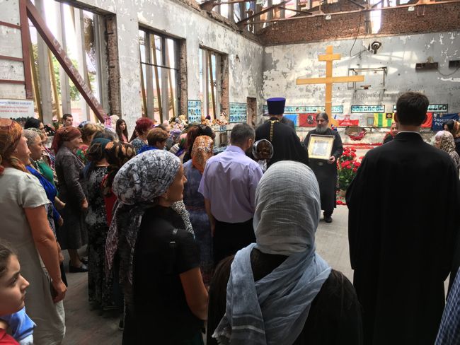 Фото: Илья Азар / «Медуза» Молебен в здании спортзала бесланской школы № 1, 5 сентября 2016 года