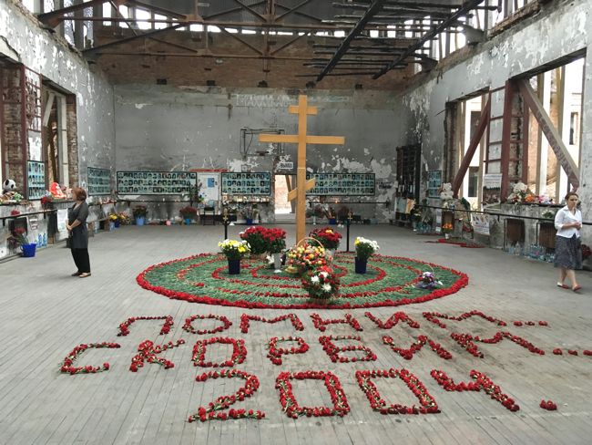 Фото: Илья Азар / «Медуза» Мемориал в память о погибших в бывшем спортзале школы № 1 в Беслане