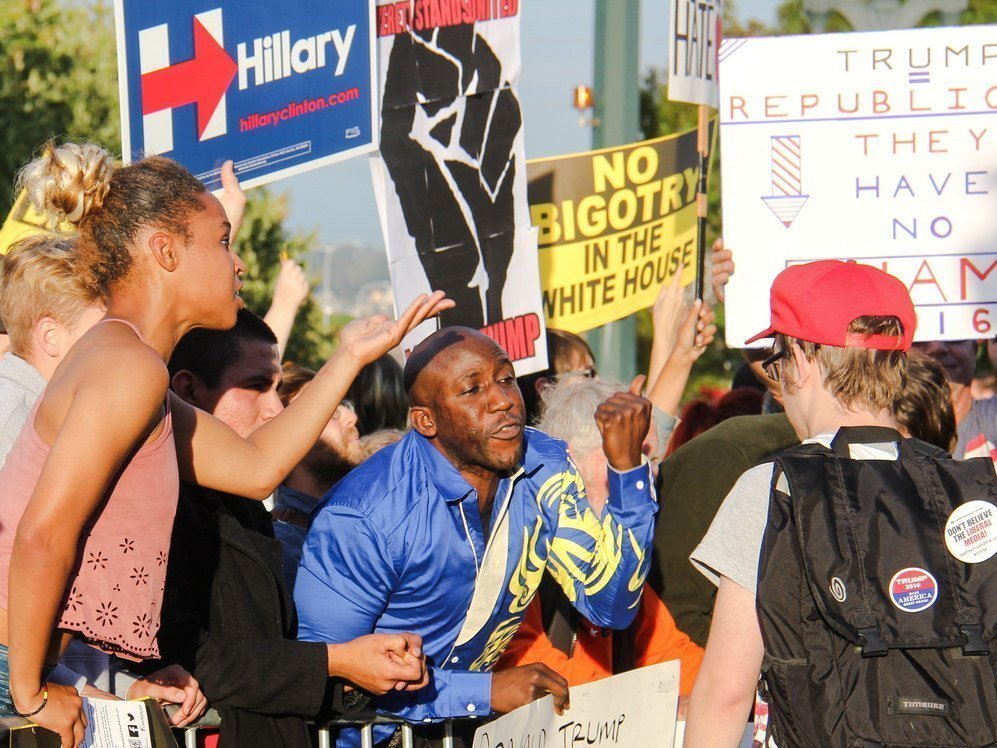 Уличные протесты во время избирательной кампании Трампа в городе Эверетт (округ Вашингтон). 30 августа 2016 Фото: scottlum / Flickr В США последний национальный опрос CNN/ORC показал, что кандидат в президенты США от республиканцев Дональд Трамп на два процентных пункта обогнал свою оппонентку от демократов Хиллари Клинтон в рейтинге симпатий. Это примечательное событие, потому что после номинации Клинтон Трамп начал отставать в рейтинге и, как предполагали многие комментаторы, необратимо терять популярность.