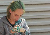 Вместе с Костюченко находилась журналистка "Таких дел" Диана Хачатрян. Она попыталась снять следы зеленки на лице и одежде своей коллеги, однако еще один гражданин в футболке "Антитеррор" ударил Хачатрян по голове, отобрал мобильник и не спеша ушел. Полицейские и в этот раз не стали пресекать нападение и задерживать виновного.