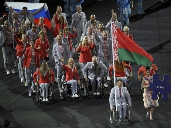 Паралимпийская сборная Белоруссии вынесла российский флаг наряду с белорусским во время церемонии открытия Паралимпийских игр 2016 года в Рио-де-Жанейро 7 сентября.