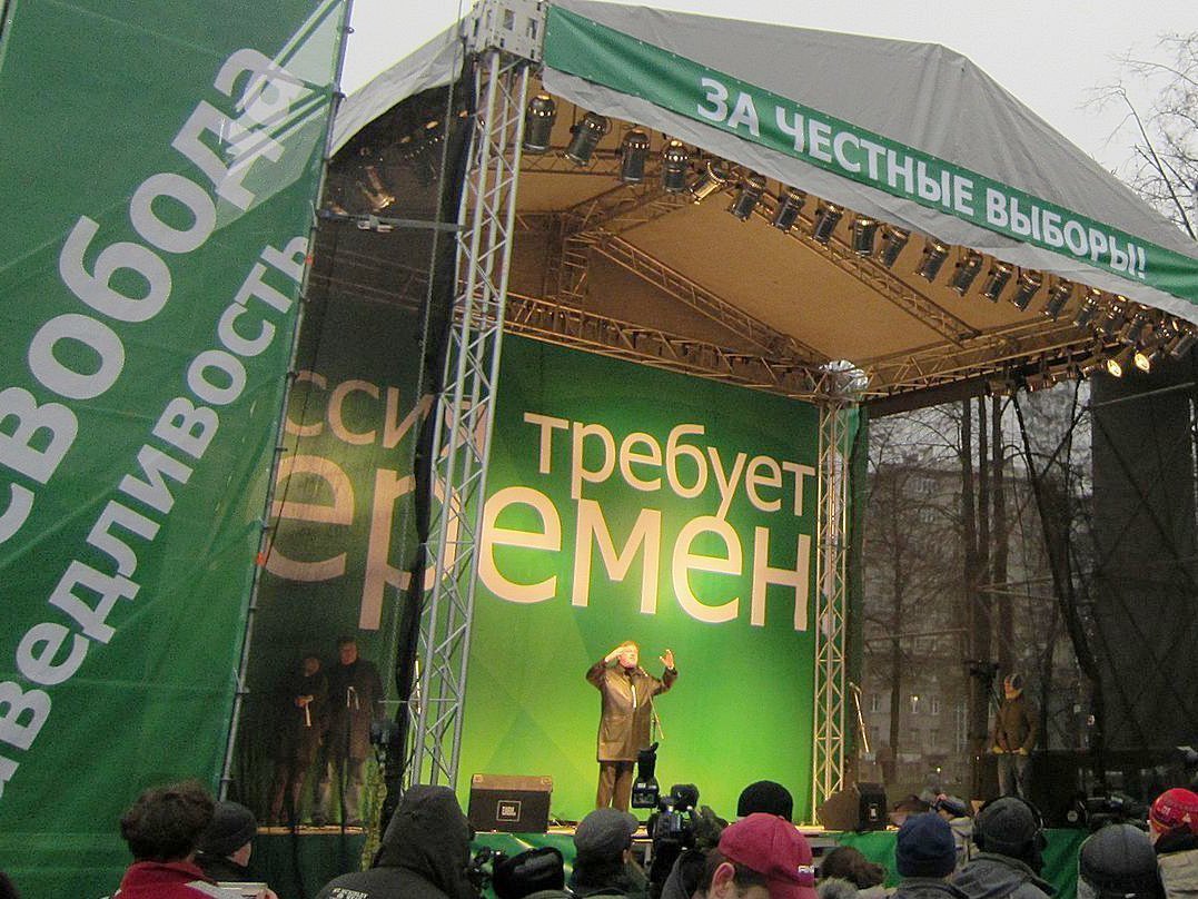 Григорий Явлинский выступает на митинге "Яблока" в Москве 17 декабря 2011 Bogomolov.PL Партия «Яблоко» в последний раз попадала в парламент в 1999 году. Но в 2011 году набрала более 3% голосов избирателей и теперь имеет право выдвигать свой список и одномандатников без сбора подписей. Учитывая мощные отделения в некоторых регионах и известное имя, партия могла бы рассчитывать на повторение результата пятилетней давности. Однако предвыборный съезд показал: «Яблоко» способно на большее.