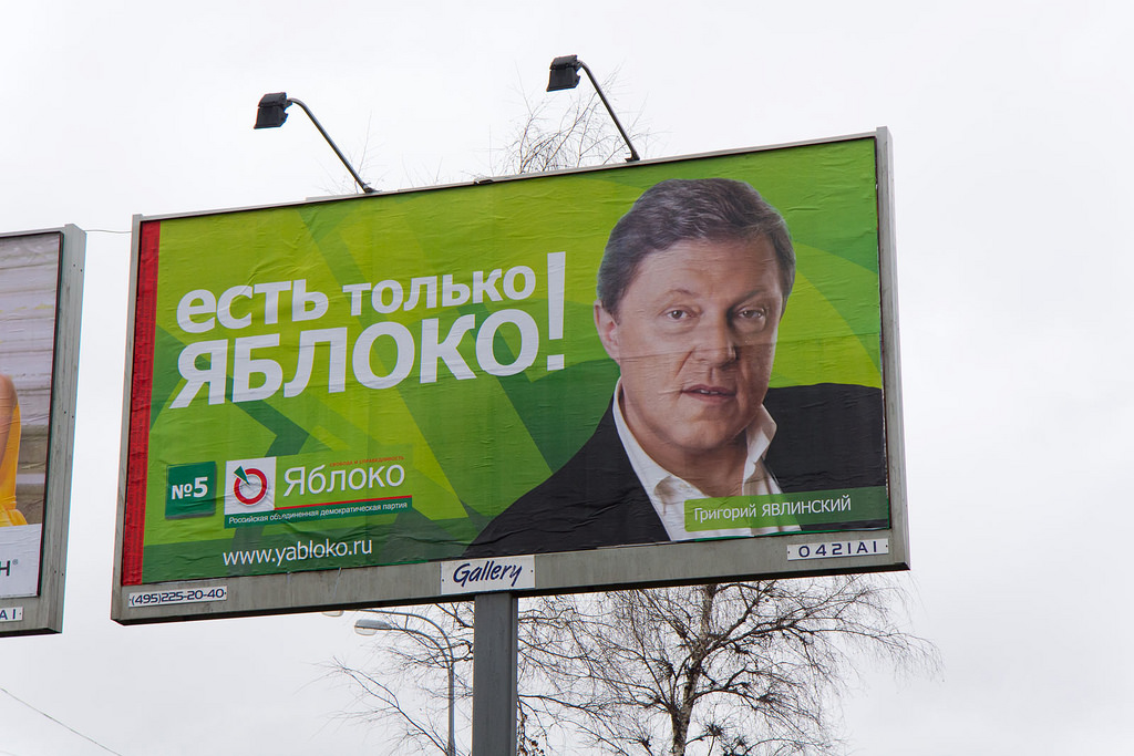 Предвыборная агитация "Яблока" в 2011 году. Фото Москвы / Moscow-Live Создание коалиции либеральных сил — давняя мечта «правой» оппозиции в России, которая не может осуществиться уже много лет. В какой-то момент в качестве базы для коалиции рассматривался «Парнас», но в результате череды скандалов и конфликтов от этой идеи пришлось отказаться. Тогда нишу заняло «Яблоко», причем на удивление успешно.