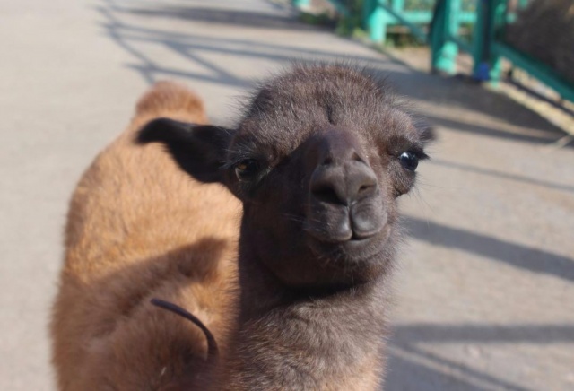 Сотрудники парка просят посетителей не шуметь в присутствии маленькой гуанако, так как она очень пуглива.