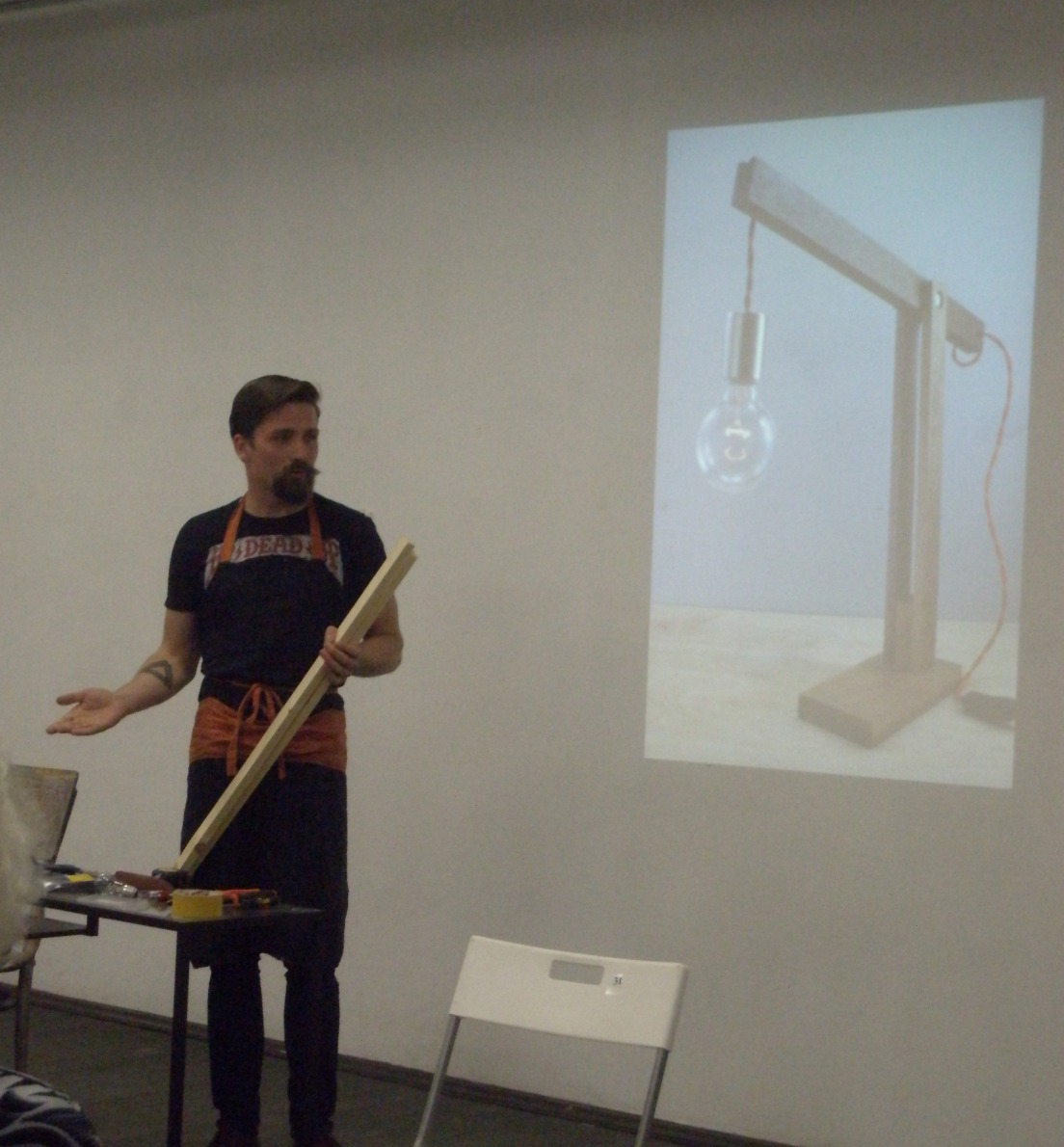 В первый вечер Будимир Ворошилов во время чтения лекции собрал из подручных материалов напольный светильник-журавль, для чего использовал металлическую банку, три деревяшки, уголки, патрон, выключатель и шнур. Орудовал в основном шуруповёртом. Изготовление заняло минут двадцать (театральная галерея «Цех» оправдала своё название). Концовка лекции проходила уже при свете только что созданного светильника-софита. Похожий светильник уже несколько дней стоит у Будимира Ворошилова дома — возле стола, который он тоже сделал сам. «Каждый день, когда сажусь за свой стол, получаю удовольствие, — пояснил лектор. — Это сделало мою жизнь немного лучше».