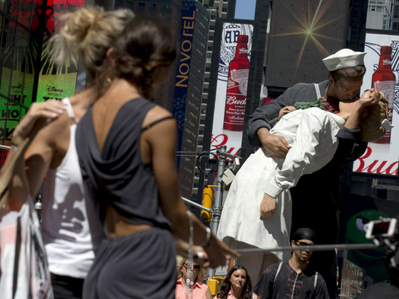 Фотограф Альфред Эйзенштадт заснял на фотографии моряка в темной форме, целующего Грету Фридман на Таймс-сквер в Нью-Йорке. Сама Фридман утверждала, что поцелуй был внезапным и спонтанным: "Молодой человек просто подошел и схватил меня".