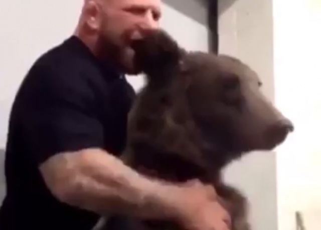 Известный боец смешанного стиля Джефф Монсон, ранее принявший гражданство РФ, опубликовал видео, как он играет с медведем.