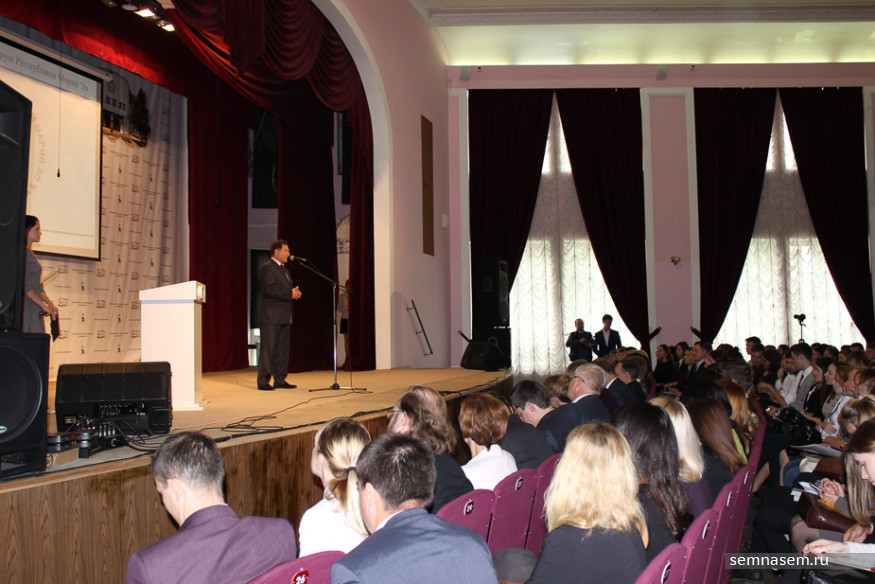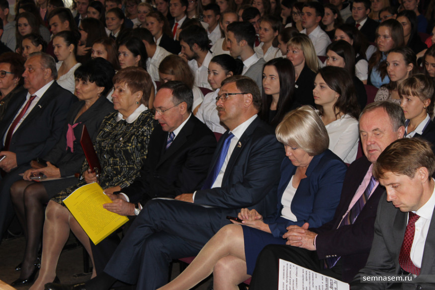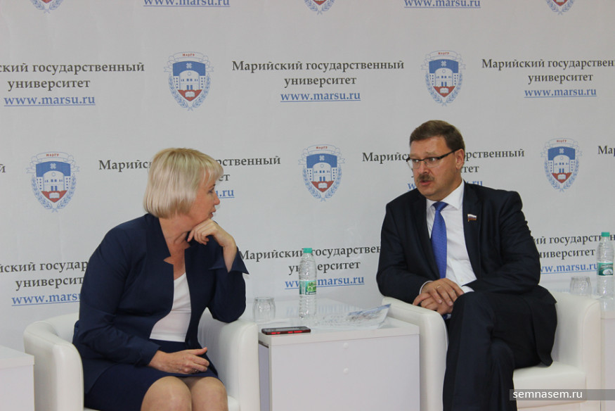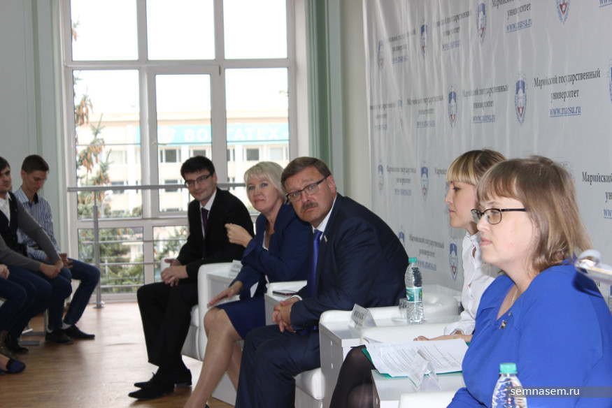 После приветственной речи ректора МарГУ Михаила Швецова слово предоставили гостям. Сенатор Косачёв в своей речи противопоставил безответственных политиков реальным. По его словам, свой политический выбор он сделал много лет назад, когда вступил в «Единую Россию».