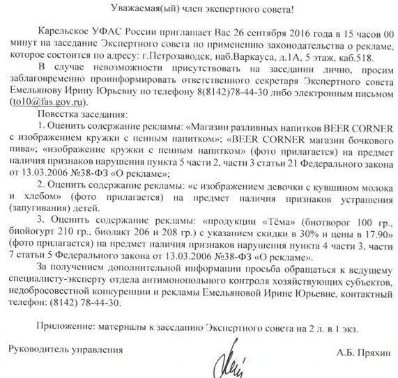 «Оценить содержание рекламы “с изображением девочки с кувшином молока и хлеба” (фото прилагается) на предмет наличия признаков устрашения (запугивания) детей», — говорится в приглашении, которое разослали экспертам. Скан документа опубликовал интернет-портал «Губерния Daily» (владельцем является Василий Попов).