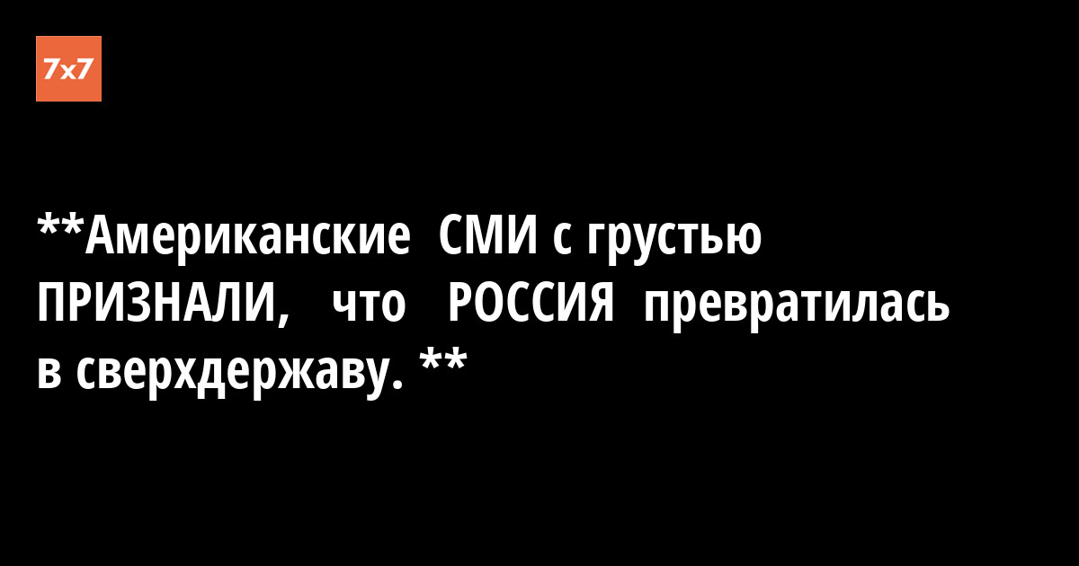 **Американские СМИ с грустью ПРИЗНАЛИ, что РОССИЯ превратилась в сверхдержаву. **