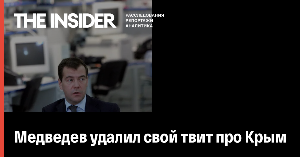 Премьер-министр Дмитрий Медведев удалил из личного «Твиттера» сообщение со словами «Крымский мост соединит полуостров с Россией, и Крым окончательно станет нашим». Запись с фотографиями визита в Крым Медведева и президента Владимира Путина была опубликована в 19:39, но через 2, 5 часа вместо нее появилось новое сообщение.