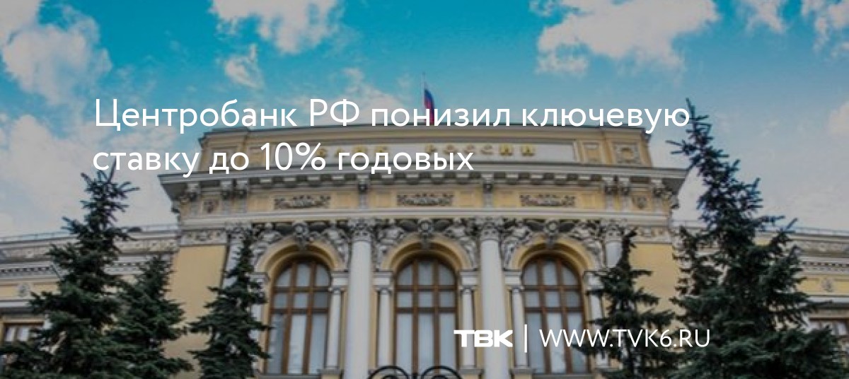 Центробанк РФ понизил ключевую ставку до 10% годовых