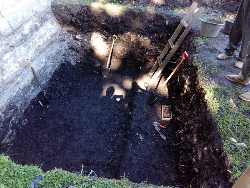 Вот откопали архиерейские палаты, выкорчевали кусты, убрали «дохлых котиков», нашли слой кирпича, по поводу которого «попытали» псковского профессора и историка Анатолия Филимонова, был ли Благовещенский собор, на месте которого сейчас стоит памятный крест, частично взорван или вручную разобран на стройматериалы. «На вид — и так и так, во всяком случае, теперь у нас есть кирпичи настоящего собора XIX века», — обрадовала Салмина. Затем обнаружили красивую мостовую — её пока разобрали — и монеты. Вопрос у археологов вызвала раскопанная вдоль стены щель.