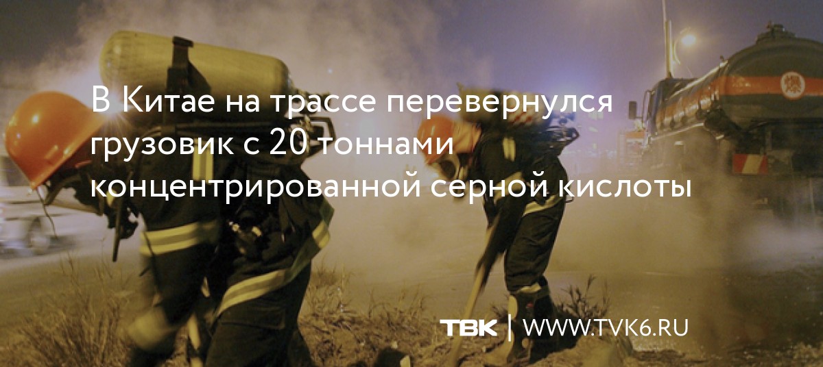 В Китае на трассе перевернулся грузовик с 20 тоннами концентрированной серной кислоты