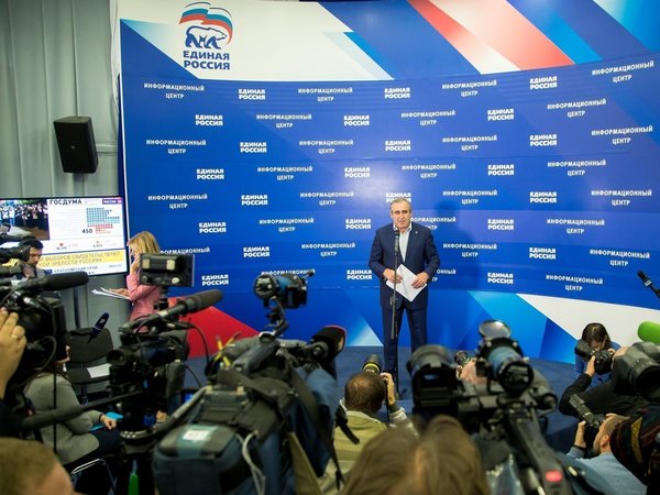 Сергей Неверов на пресс-конференции в центральном избирательном штабе "Единой России" по итогам единого дня голосования ЕР Низкая явка на выборах в Госдуму сделала свое дело: для получения конституционного большинства «Единой России» хватило 27 млн голосов — фактически это всего четверть от списочного состава избирателей. В 2007 году, когда ЕР также получила более 300 мандатов, за нее, по официальным данным, проголосовали более 44 млн россиян.