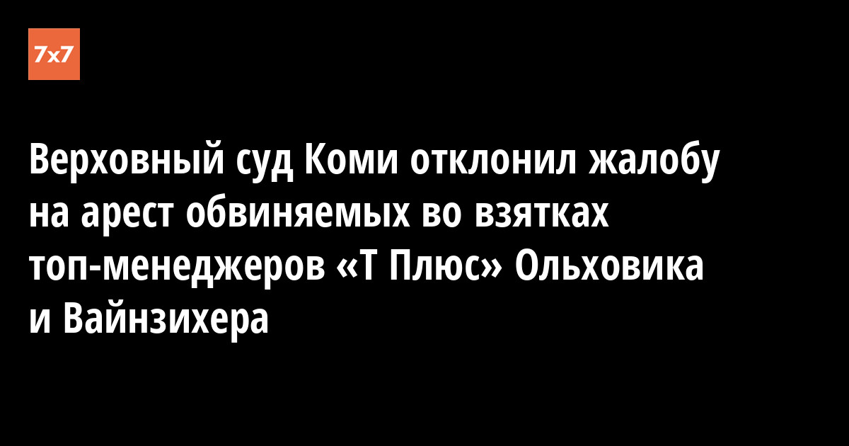 Верховный суд Коми отклонил жалобу на арест обвиняемых во взятках топ-менеджеров «Т Плюс» Ольховика и Вайнзихера