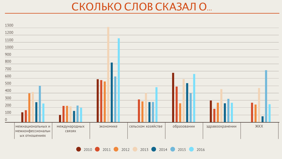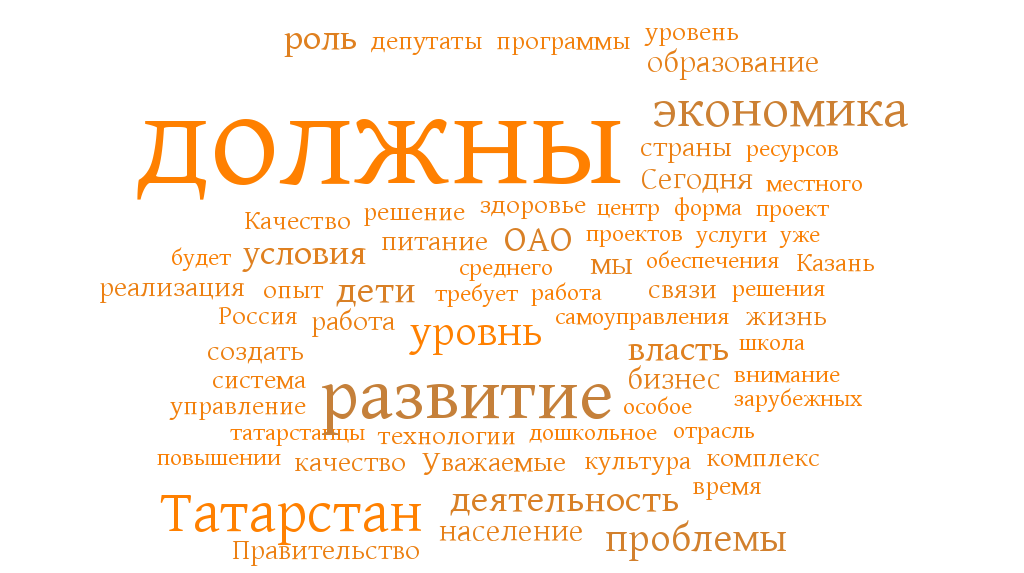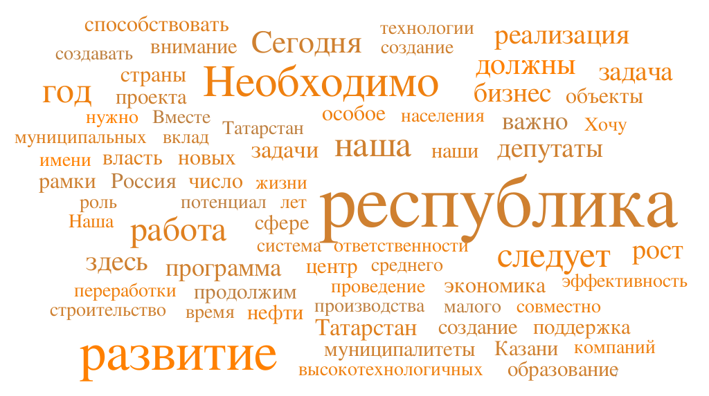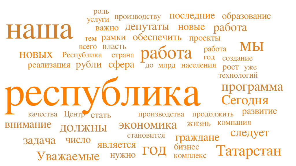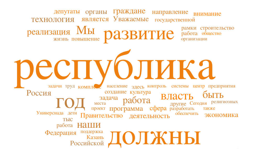 Сегодня президент Татарстана Рустам Минниханов в седьмой раз обратился к Госсовету республики с ежегодным посланием. "Idel.Реалии" проанализировали все семь выступлений главы Татарстана и узнали, как менялись тезисы его обращений, о чем он на протяжении семи лет говорил больше, а о чем старался умалчивать. Кроме того, журналисты нашего издания выяснили, какие слова чаще всего произносит Минниханов, и как на его выступления влияют события, происходящие в год послания.