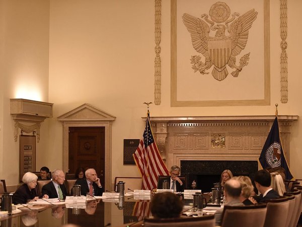 Открытое заседание ФРС США. 2015 год Фото: ФРС Во вторник началась и в среду должна закончиться очередная встреча руководства Федеральной резервной системы (ФРС) США. По итогам этой встречи процентная ставка может быть поднята либо может остаться неизменной. СМИ в ожидании итогов обсуждают перспективы. Большинство комментаторов склоняются к тому, что ставку не повысят.