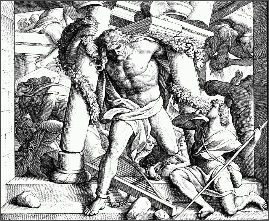 Месть и смерть Самсона. Юлиус Шнорр фон Карольсфельд. Гравюра.