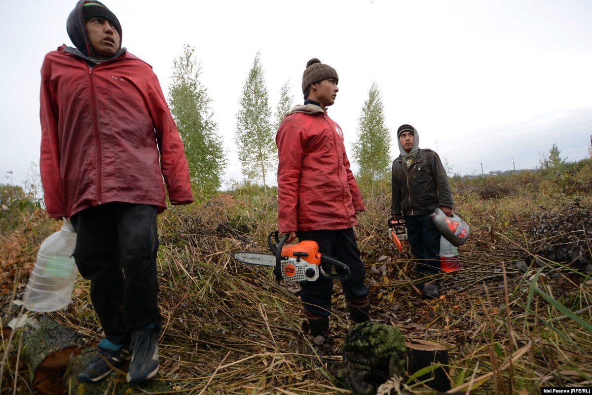 Приближаемся к кучке гастарбайтеров из Средней Азии – они в отличие от водителей на строительной технике не успели ретироваться. Заводим разговор, пытаясь выяснить, чем они здесь занимаются и кто их нанял.