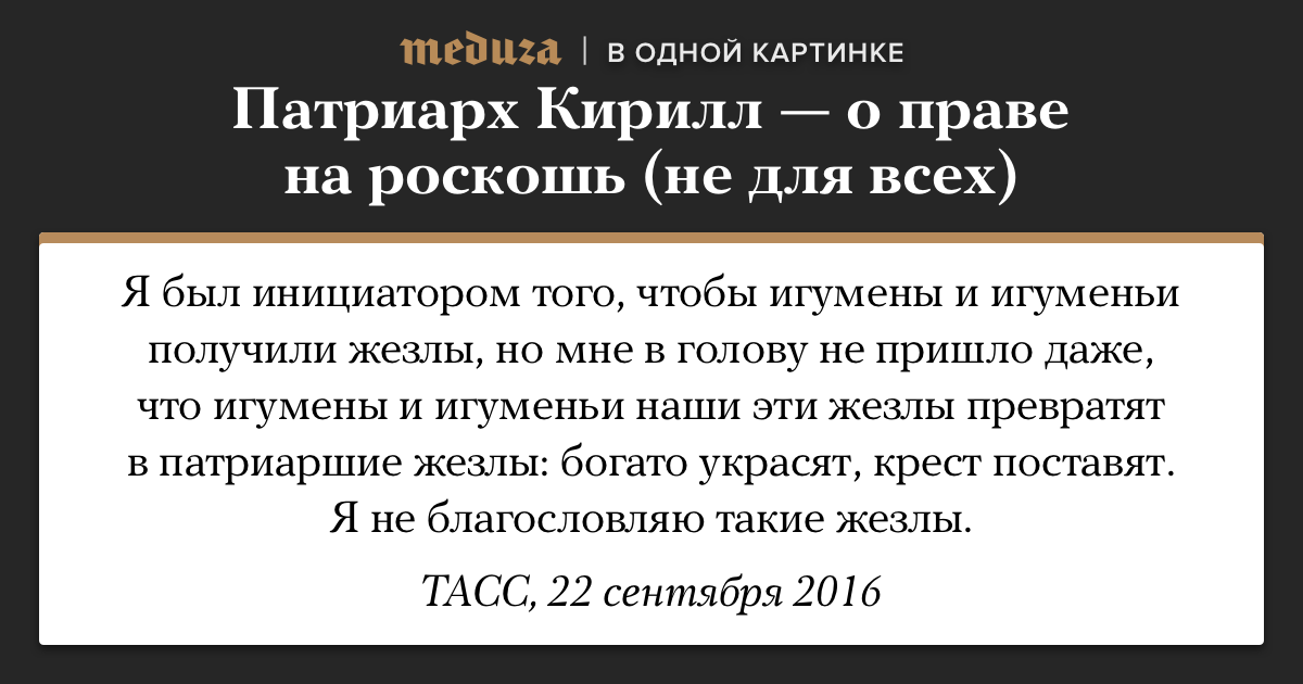 Патриарх Кирилл — о праве на роскошь, но не для всех. В одной картинке