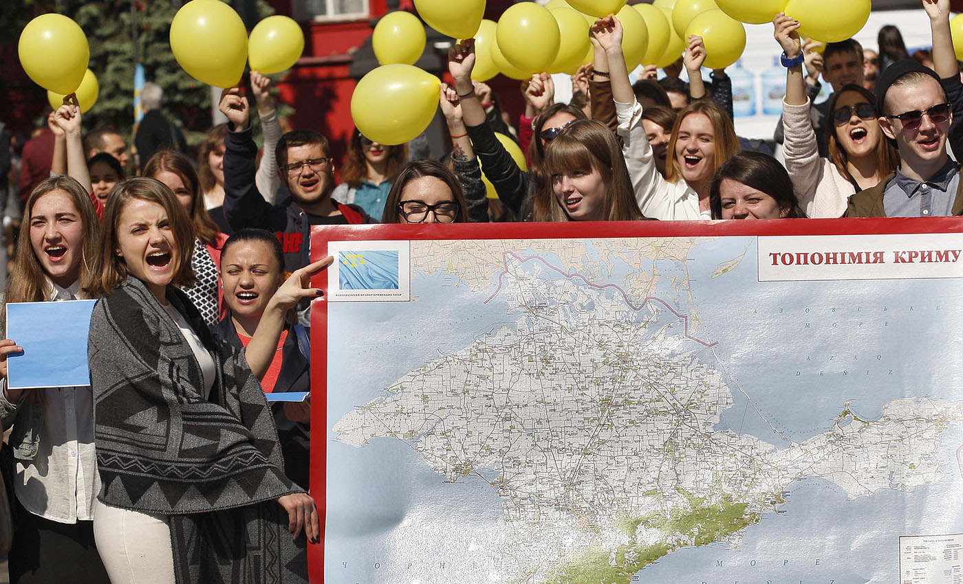 Студенты Национального университета имени Тараса Шевченко на акции памяти в Киеве в день 72-й годовщины депортации крымских татар из Крыма в 1944 году. Фото: Василий Шевченко / Zuma / ТАСС