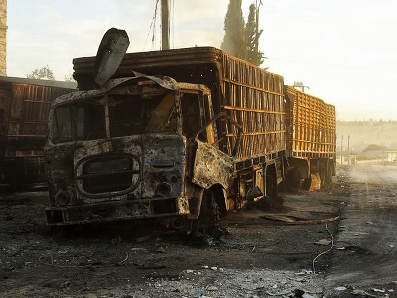 Официальный представитель Минобороны РФ генерал-майор Игорь Конашенков заявил, что боевая авиация РФ и Сирии не наносила ударов по гуманитарному конвою ООН в Алеппо. "Мы внимательно изучили видеосъемки так называемых активистов с места событий и не нашли никаких признаков попадания по автоколонне каких-либо боеприпасов. Отсутствуют соответствующие воронки, автомобили не имеют повреждений корпуса и разломов конструкций от взрывной волны авиабоеприпаса. Все продемонстрированное на видеокадрах - прямое следствие пожара груза, который странным образом начался одновременно с проведением масштабного наступления боевиков на Алеппо", - объяснил он.