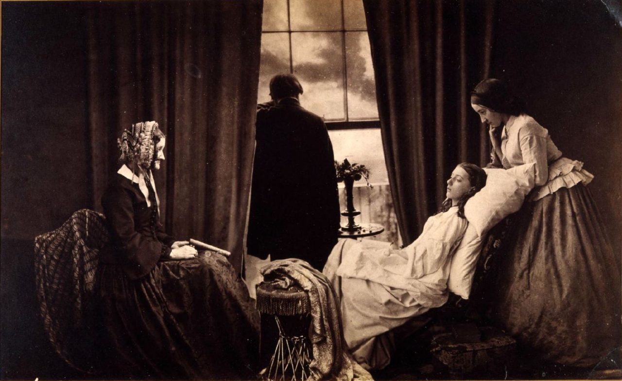 Генри Пич Робинсон. Угасание, 1858 г.Фото: Wikimedia Commons Согласно романтической концепции смерти, болезнь делает людей неповторимыми и интересными. «Я бледен, — сказал как-то Байрон, глядясь в зеркало. — Мне бы хотелось умереть от чахотки». Почему? — спросил поэта его болевший туберкулезом друг Томас Мур, который гостил у Байрона в Патрасе в феврале 1828 года. «Потому что дамы станут наперебой говорить: „Посмотрите на бедного Байрона, каким интересным он выглядит на пороге смерти“». Пожалуй, самый замечательный вклад романтиков в культуру «чувствительности» состоял не в эстетике жестокости и красоты ужасного (как полагает в своей известной книге Марио Прас) и даже не в требовании безграничной личной свободы, но в нигилистической и сентиментальной идее «интересного».