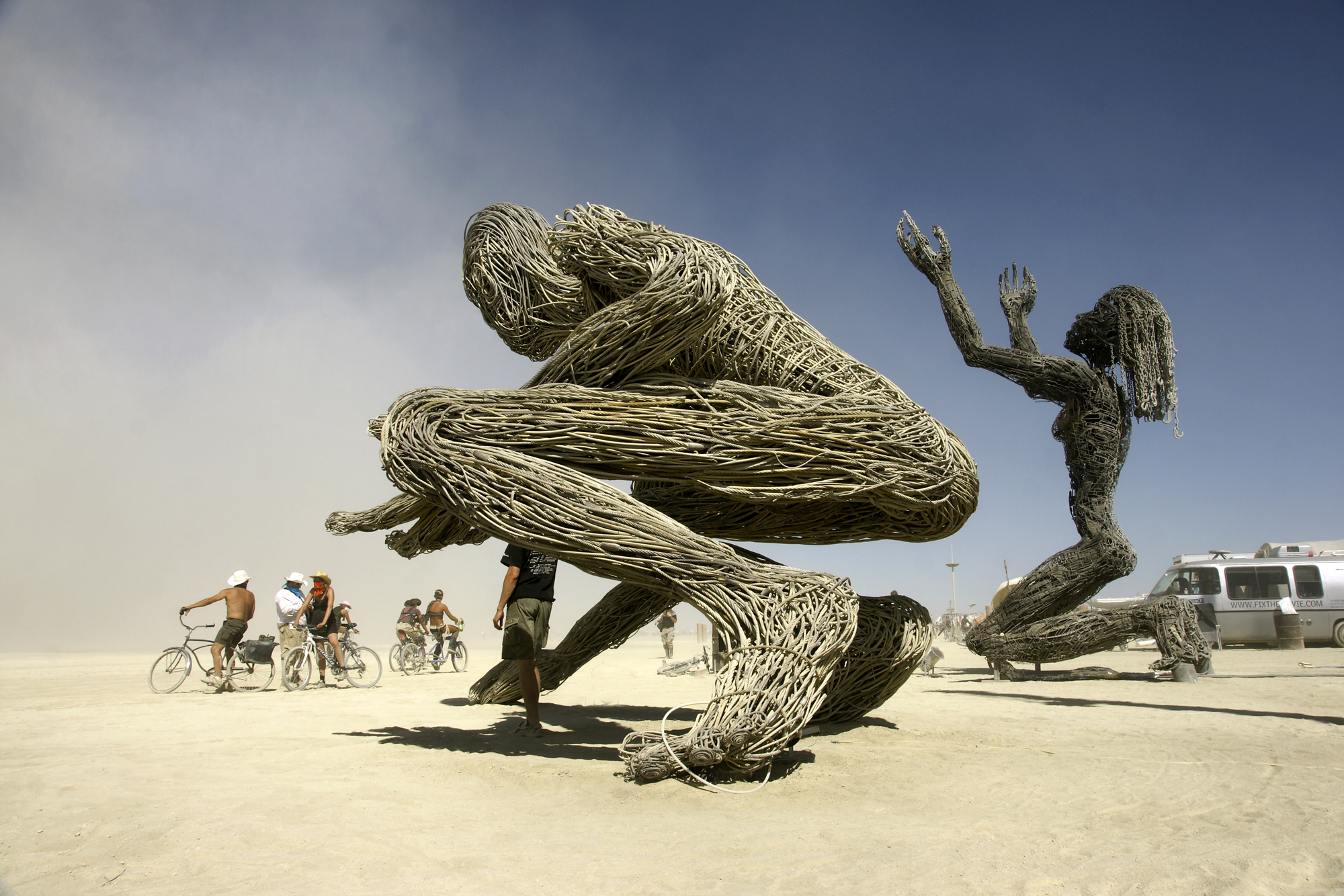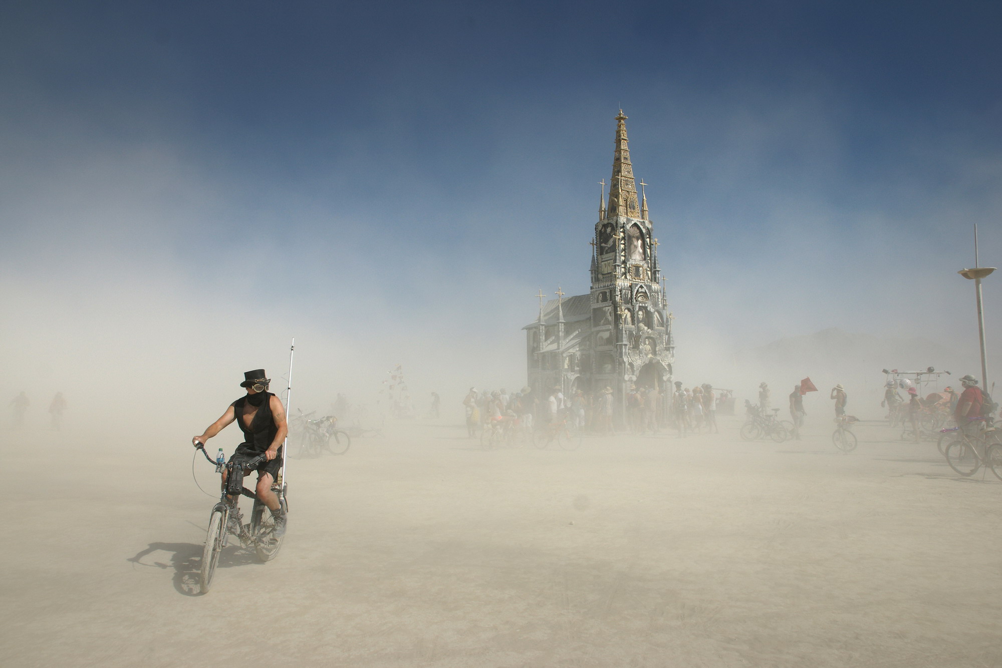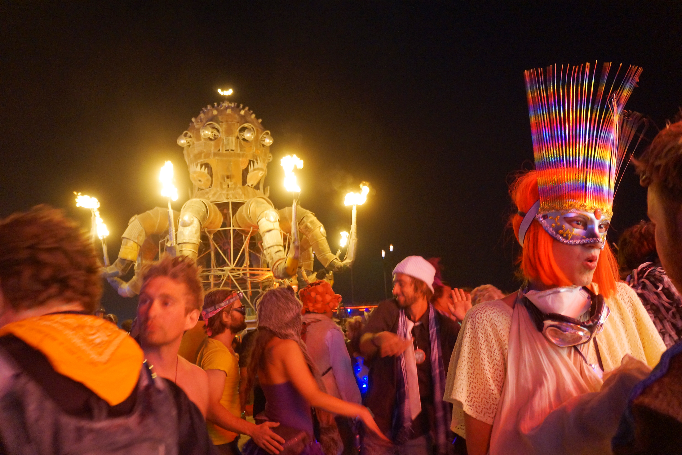 – В четверг начинается сжигание небольших скульптур из других стран, в пятницу сжигают большие скульптуры, в субботу сжигают самого Человека. 70 тысяч людей собираются, арт-кары, большие машины с музыкой, все играют и танцуют. А в воскресенье сжигают Темпл, это святое место, где вспоминают мертвых, мертвых ветеранов войны, даже собак, может быть. Там происходят и свадьбы.