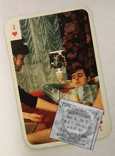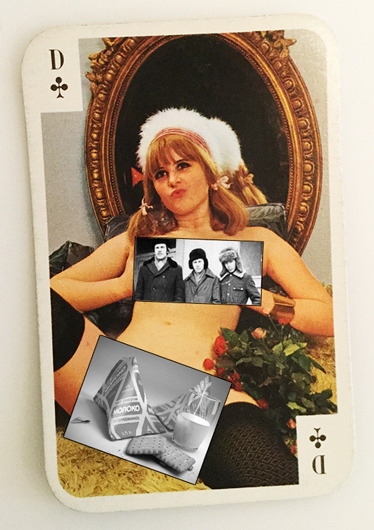 © Линор Горалик (на основе колоды карт 1970-х годов из личного архива Натальи Конрадовой) Natalia Konradova: Мой дедушка привозил из Чехии и Германии чемоданы порнографии. Ездил туда на выставки от КБ Камова. Эта порнография до сих пор у меня лежит.