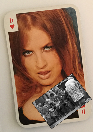 © Линор Горалик (на основе колоды карт 1970-х годов из личного архива Натальи Конрадовой) Julia Karlova: В третьем классе мальчик дал мне пару-тройку маленьких черно-белых фотографий с обнаженными женщинами, индийского производства. Я их домой принесла, но испугалась, что мама найдет, и порвала. Мальчик меня потом третировал весь год! Пришлось школу поменять.