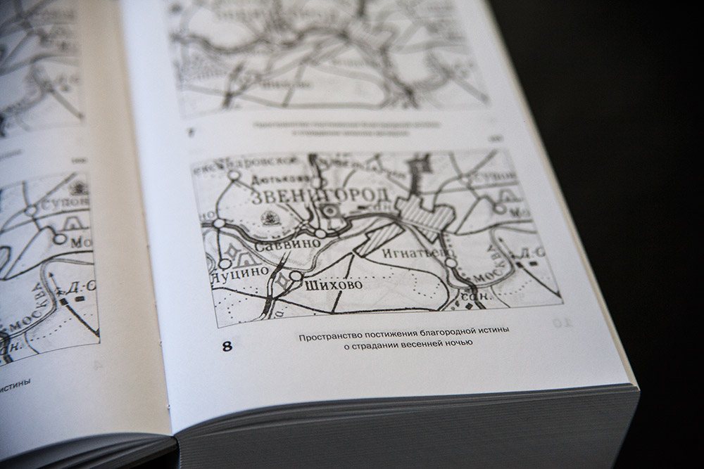 Я, конечно, не могу, как Джойс, рассчитывать на целый том комментариев к этой книге, поэтому я и не ожидаю, что все здесь будет понятно читателям. Кто-то воспримет это как дуракаваляние, постмодернистскую игрушку, — пожалуйста, это тоже подход. Но я всегда стремлюсь, чтобы шкатулка была с двойным дном, пусть его никто и не нащупает. Здесь все обосновано, просто не каждая буква в строку пишется. Почему я, скажем, напечатал на нескольких страницах карты Звенигорода? Если приглядеться, на каждой карте можно разглядеть маленькую статую Бодхисаттвы. Она отмечает те места, где со мной в юности происходило что-то важное. Этого и не надо знать, пусть читатель просто видит эти фигурки Бодхисаттвы.