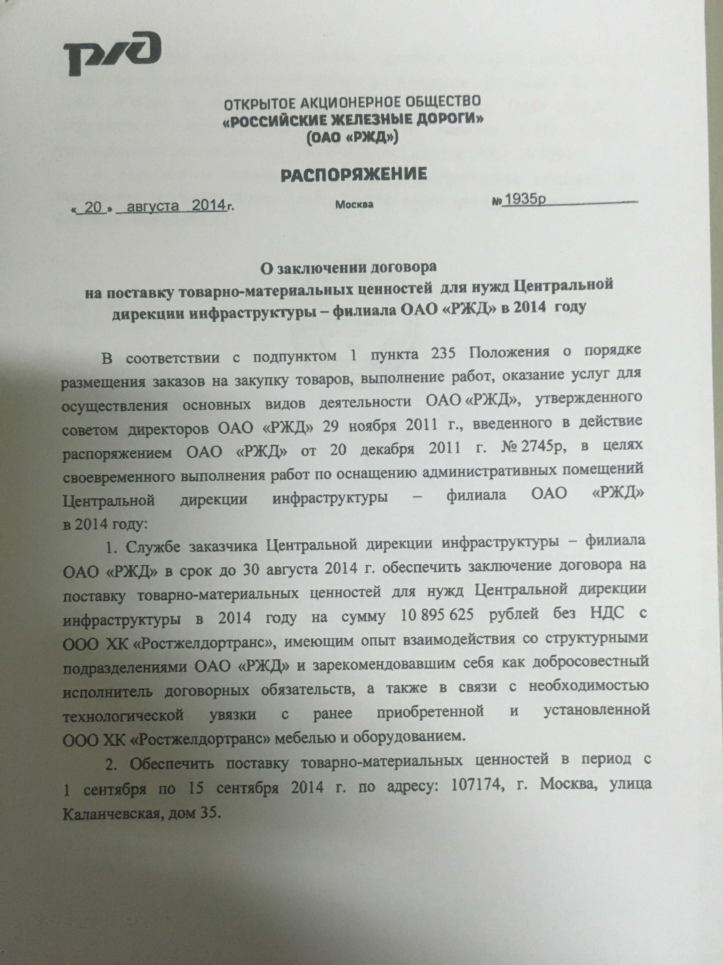 То же "Положение о закупках" обязывает РЖД обосновывать выбор единственного поставщика. Однако если в отдельных распоряжениях и есть обоснования, звучат они неубедительно. Так, распоряжение Александра Целько № 2173 от 15 сентября 2014 года предписывает заключить договоры на "противокоррозионную защиту металлических строений ж/д мостов" с ООО "Стройтрансреконструция" и ООО "ТрансСтройИнвест" на 206 млн и 111 млн рублей соответственно. Обоснование: "данные компании являлись победителями открытых конкурсов" на выполнение данных работ в 2012–2013 годах и "зарекомендовали себя как добросовестные исполнители". На основании того, что компания хорошо себя зарекомендовала, подписывались и другие договоры, например с ООО "Продюсерская компания "Аметист" на празднование Дня железнодорожника в 2013 году для одной только ЦДИ – на 8 млн рублей. Всего на проведение праздников с 2012 по 2014 годы ЦДИ потратила более 21 млн рублей, "Аметист" – основной контрагент.
