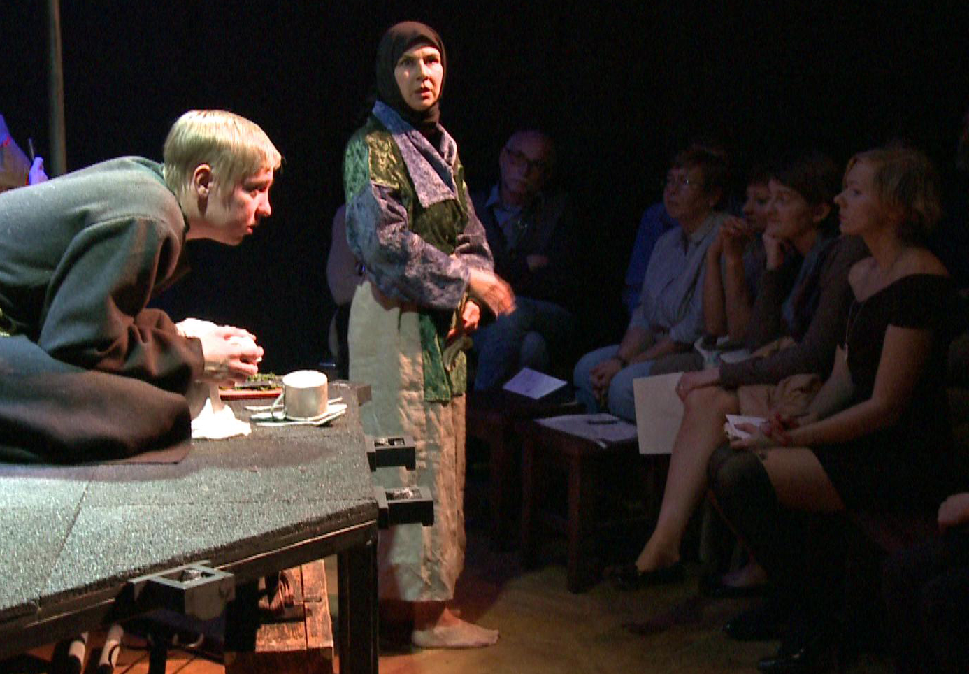 И вот "молодые специалисты по инновациям", переодевшись, разыгрывают сцены из прошлого. Крестьянка с младенцем, который то ли жив, то ли уже мертв. Парень в обносках рассказывает, как можно сварить суп из подорожника, когда вся семья уже пухнет с голода… Они пытаются понять невероятное: как голодные, лишенные всего, затерянные в глухой тайге люди вдруг находят в себе силы на протест? Это запредельный героизм или предсмертное отчаяние, когда терять уже все равно нечего?