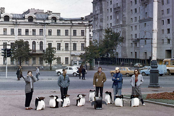 зАиБи (движение «за Анонимное и Бесплатное искусство»). «Пингвины». 1991 г. Если искусство перестает быть рукотворным, точнее, если определяющей тенденцией его развития становится незрелищность (вспомним, к примеру, о перформансе, акционизме, даже концептуальное искусство подводит нас к такому пониманию), тогда что именно сохраняется — может сохраняться — от искусства? И в чем сегодня миссия художника? Во-первых, как считает Краусс, может сохраняться идея выразительного средства сама по себе. Но тут возникает известное противоречие. Для того чтобы сохранить саму эту идею, современные художники должны отказаться от представления о специфике средств выражения, то есть о специфическом языке применительно к каждому виду искусства. Более того, эти самые средства они должны заимствовать извне, за пределами искусства, в областях, которые можно было бы назвать насквозь профанными, если бы различение «высокого» и «низкого» по-прежнему имело какой-нибудь смысл. Вместо специфики искусства (и искусств) — образы массовой культуры и масс-медиа, существующие обязательно в режиме повторения, и они-то и становятся де-факто языком современного искусства. Это и есть то, что называют the post-medium condition и что можно описательно передать по-русски так: искусство после конца (исчерпания) присущих ему выразительных средств.