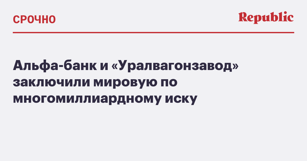 Альфа-банк и «Уралвагонзавод» заключили мировую по многомиллиардному иску